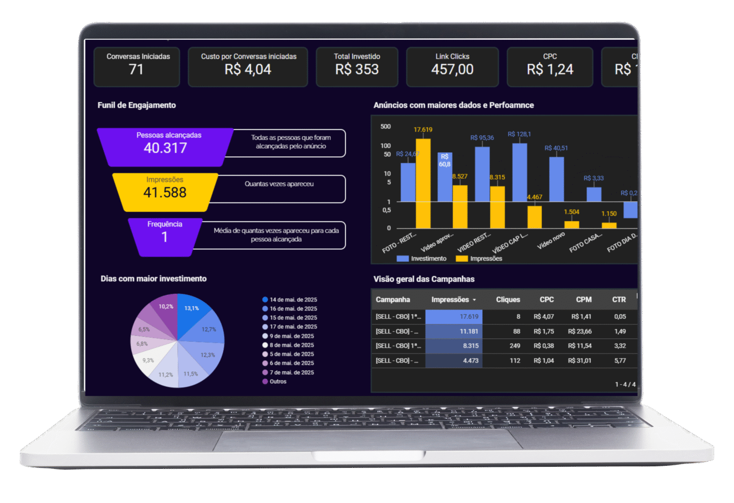 Eu crio, gerencio e otimizo anúncios pagos para atrair mais clientes para o seu negócio, estudando o seu público, criando estratégias específicas e focando em gerar vendas reais, não só cliques.